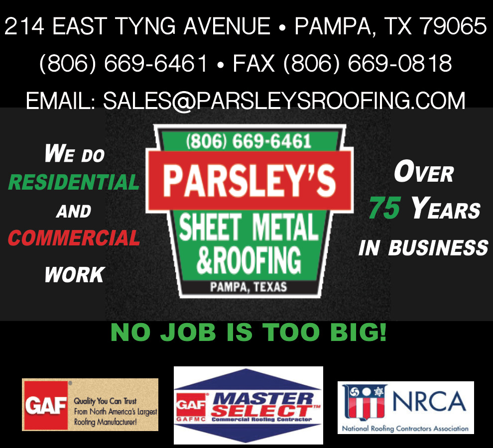 Ads for Parsley's Sheet Metal & Roofing in Pampa, TX