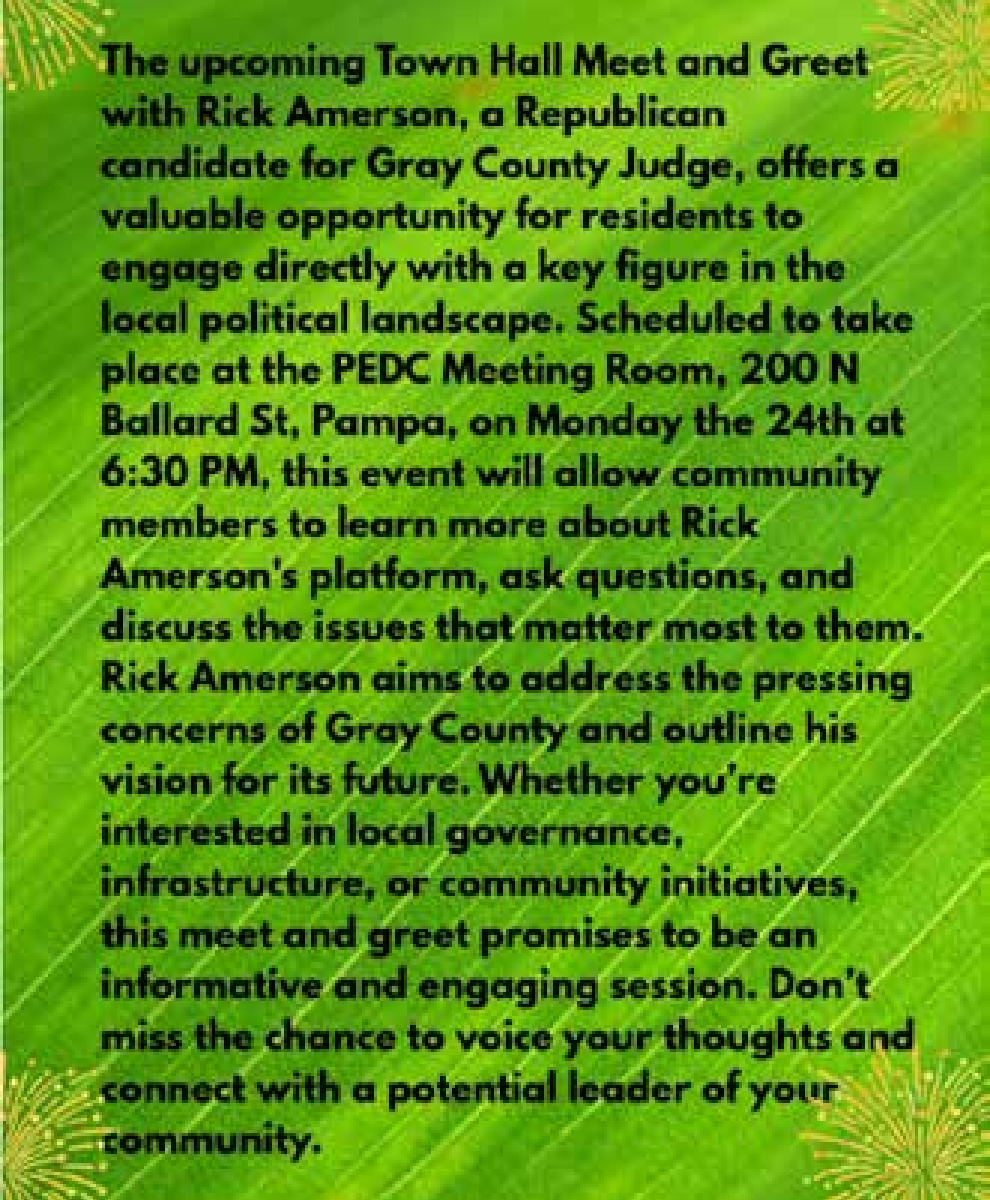 Nov 18, 2025. Gray County Town Hall Meet & Greet (November 24, 2025) Government Ads from The Pampa News