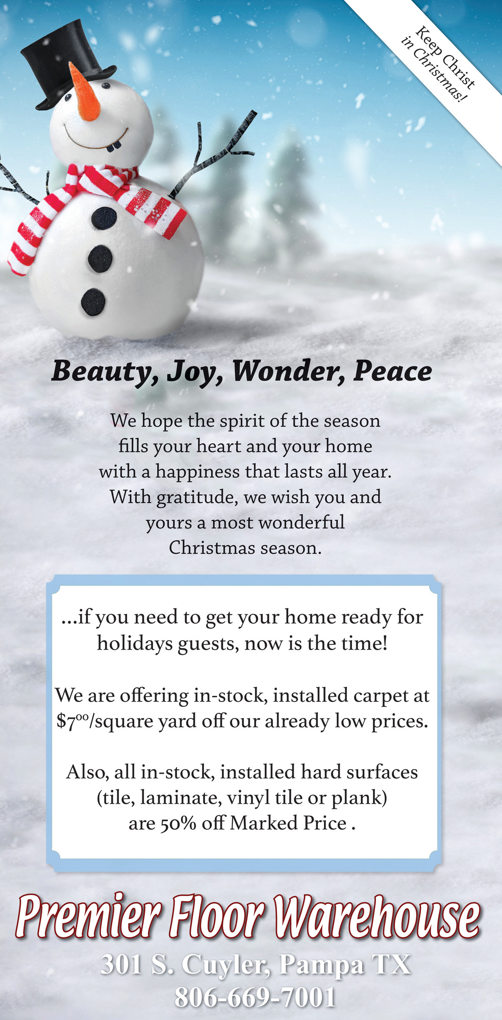 Dec 08, 2025. Premier Floor Warehouse Home Improvements Ads from The Pampa News