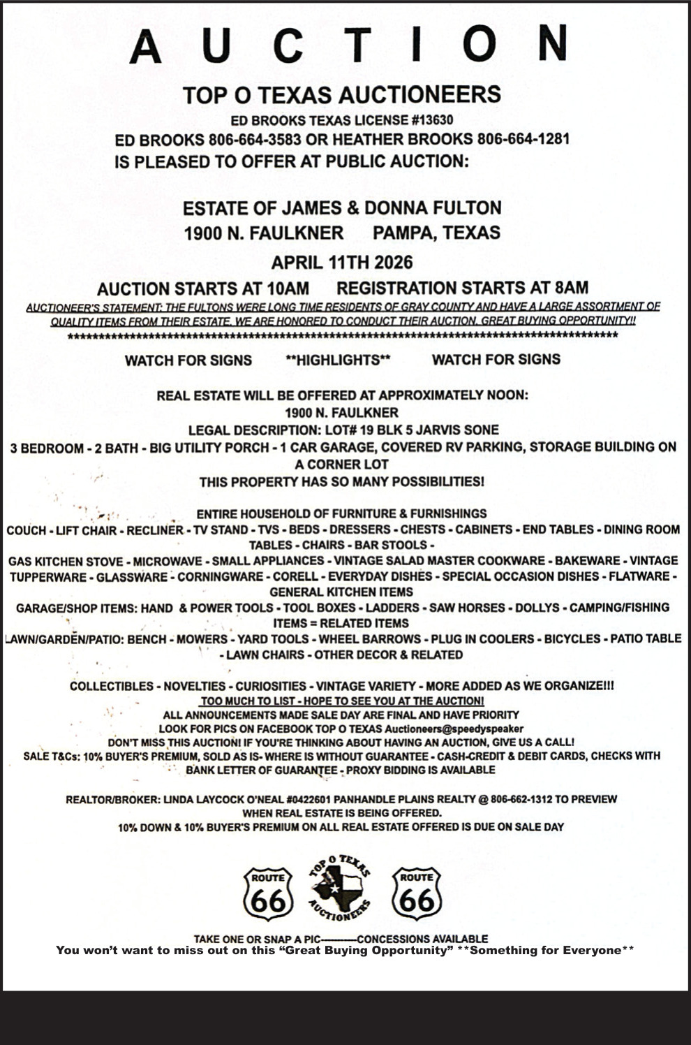 Apr 20, 2026. Top O Texas Auctioneers Auction Ads from The Pampa News